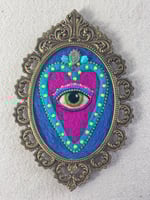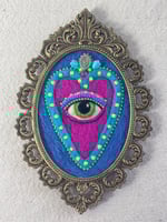 Needle felted wool with embroidery and bead embellishments, presented in a vintage frame. Signed and ready to hang.